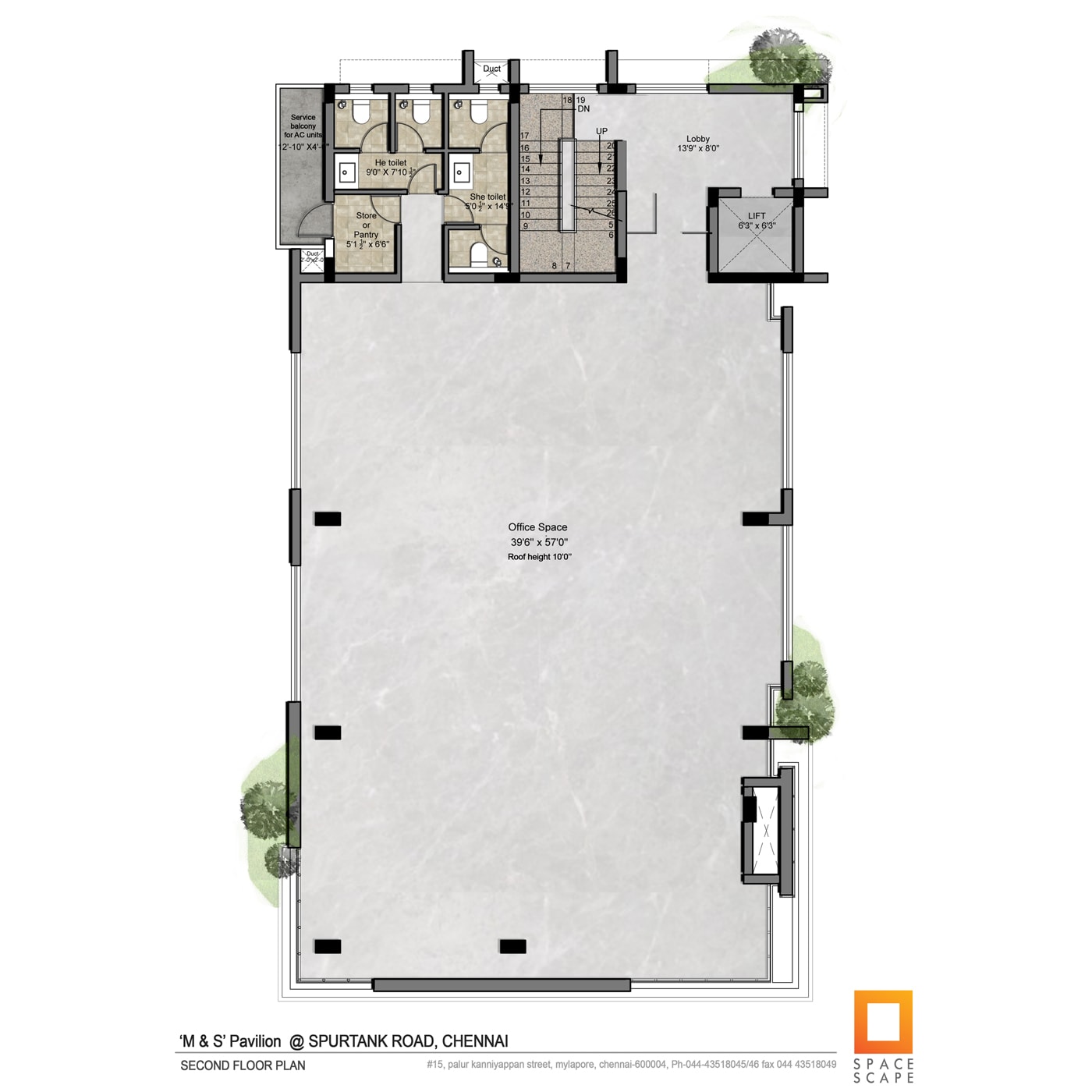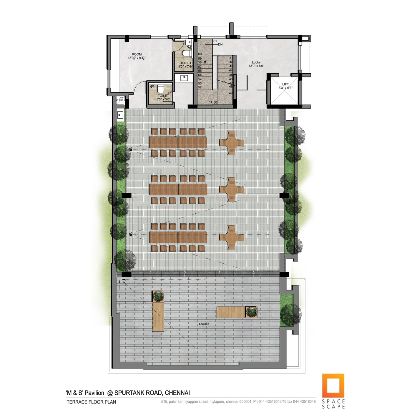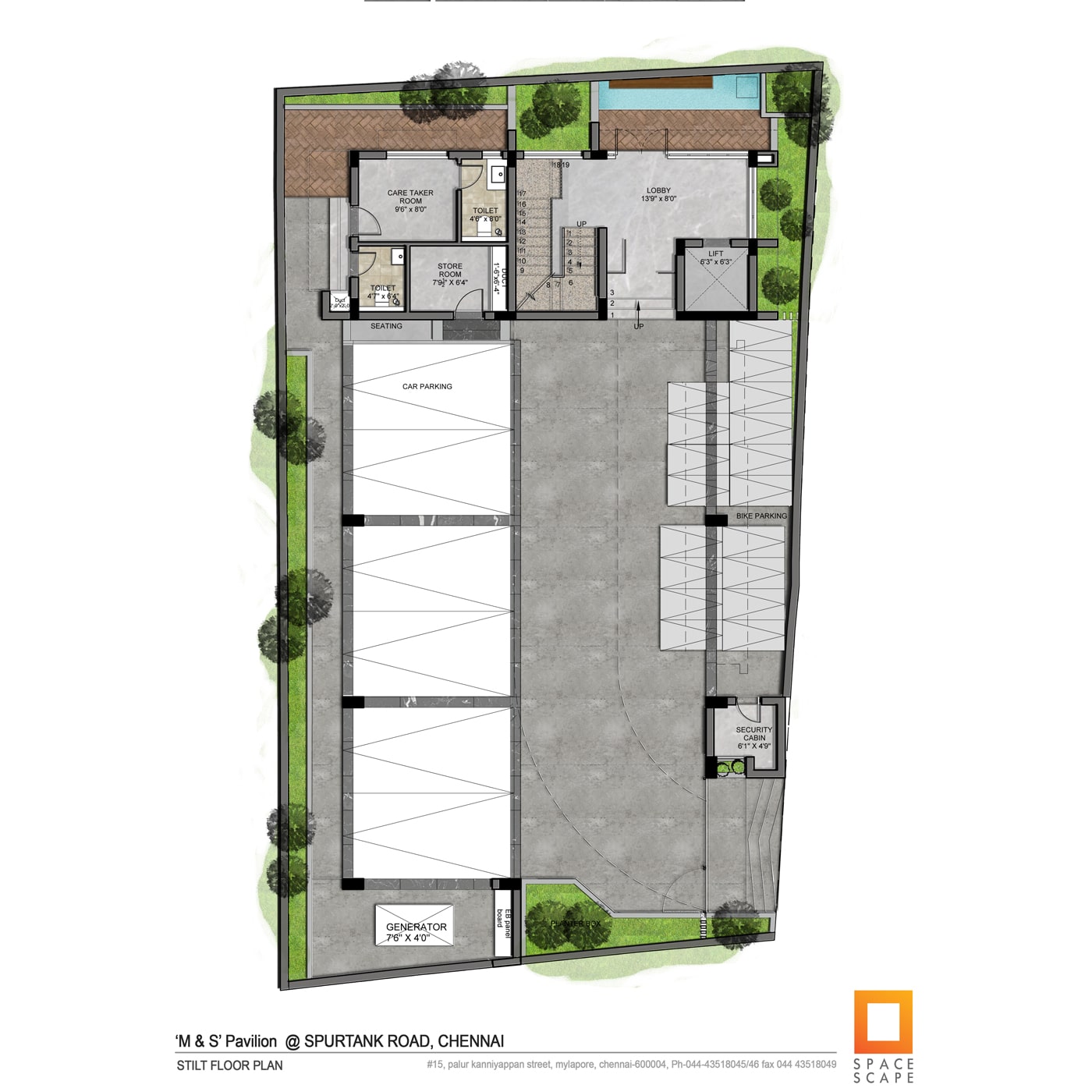 M&S 'Pavilion' is a commercial development comprising of two floors of office space with stilt car parking and roof top cafeteria. It is located at Spurtank road, Chennai. M&S ‘Pavilionʼ is a suitable destination for growing business.