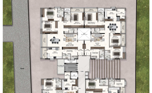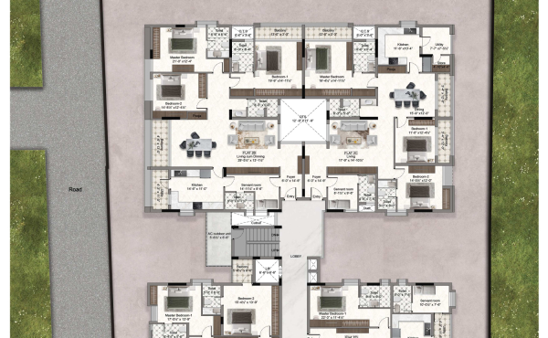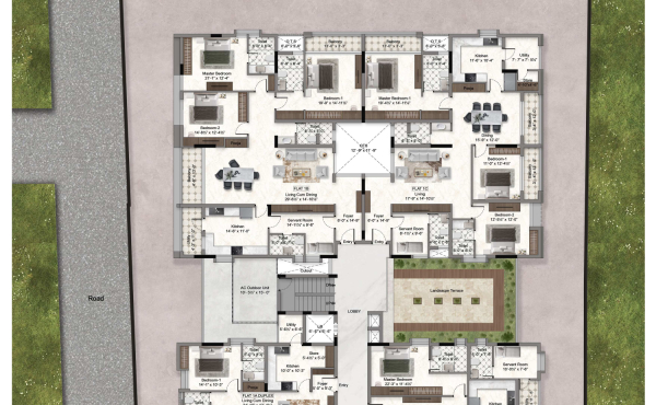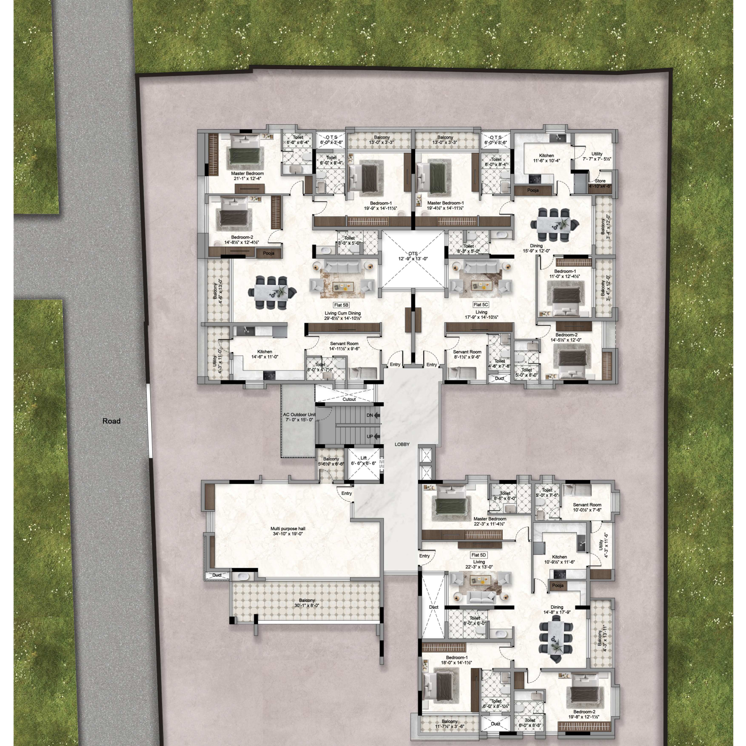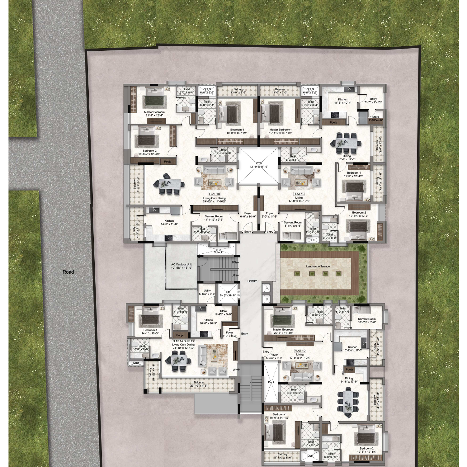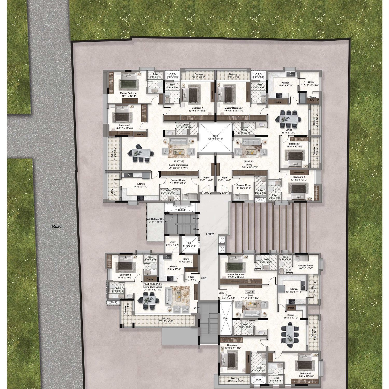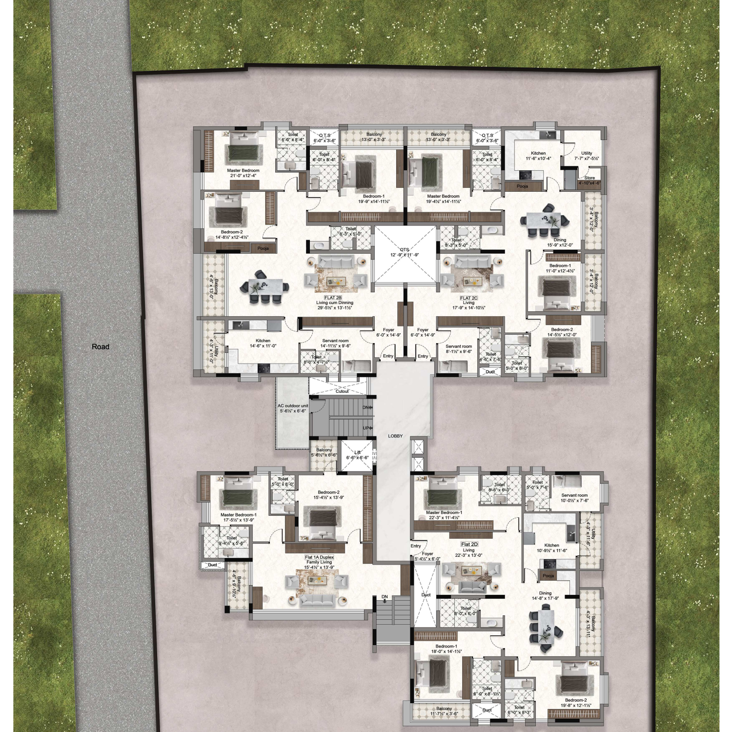 VRV air conditioners will be provided in living, dining and in all bedrooms.